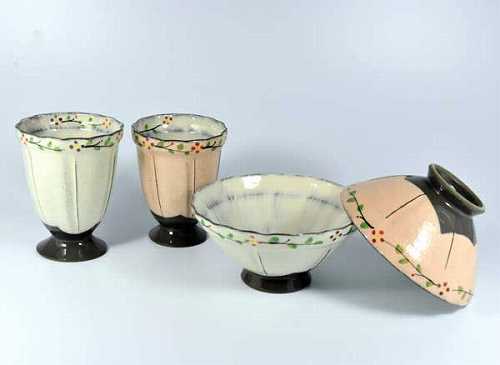 【 送料無料 】 京焼 清水焼 京 焼き 京焼き 夫婦茶碗 2客 湯呑み 2客セット睦揃え 花くるり