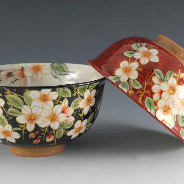 【 送料無料 】 京焼 清水焼 京 焼き 京焼き 夫婦茶碗 組飯碗 2客セット 紙箱入り 交趾さくら こうちさくら