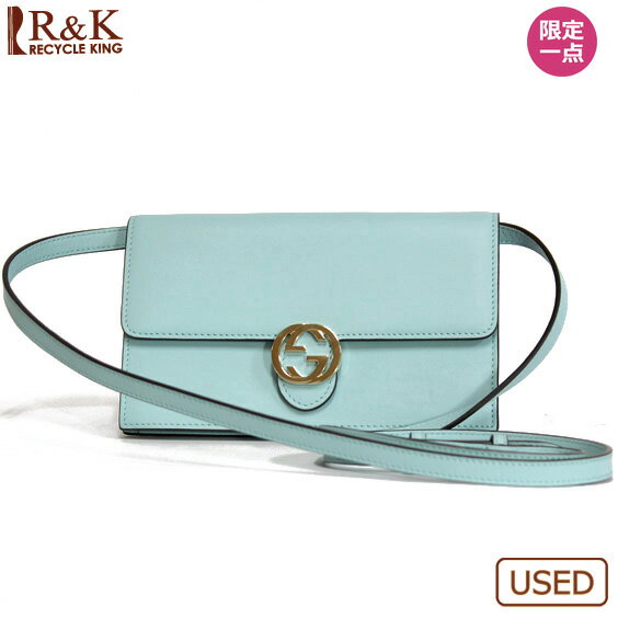 【送料無料】【中古】GUCCI ショルダーウォレット レザー 財布 ライトブルー系 水色系 グッチメンズ レディース 男性 女性 おしゃれ オシャレ かわいい カワイイ specialprice2505