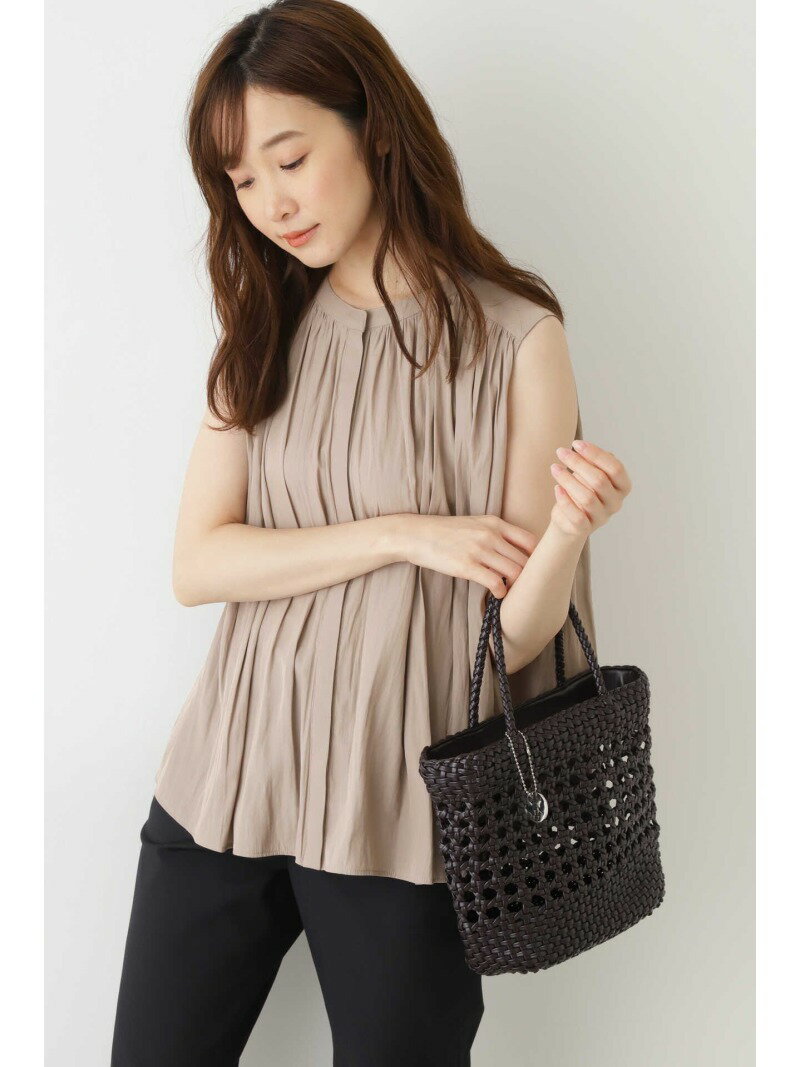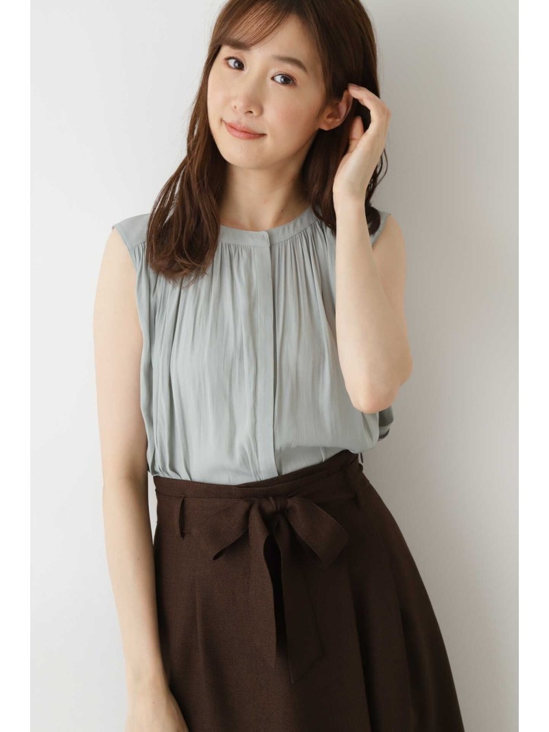 NATURAL BEAUTY BASIC(ナチュラルビューティベーシック)割繊サテンギャザーブラウス◆今年らしい割繊のサテンを使用したノースリーブブラウス。