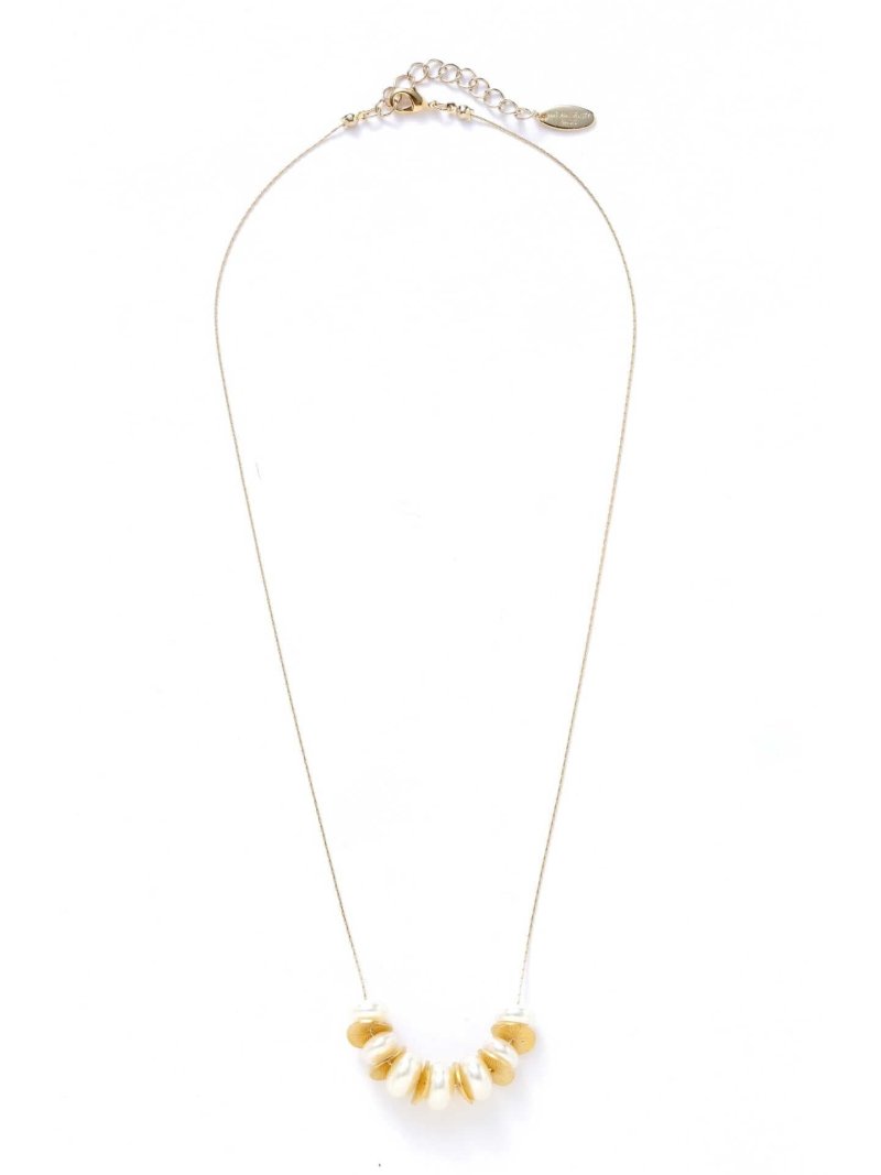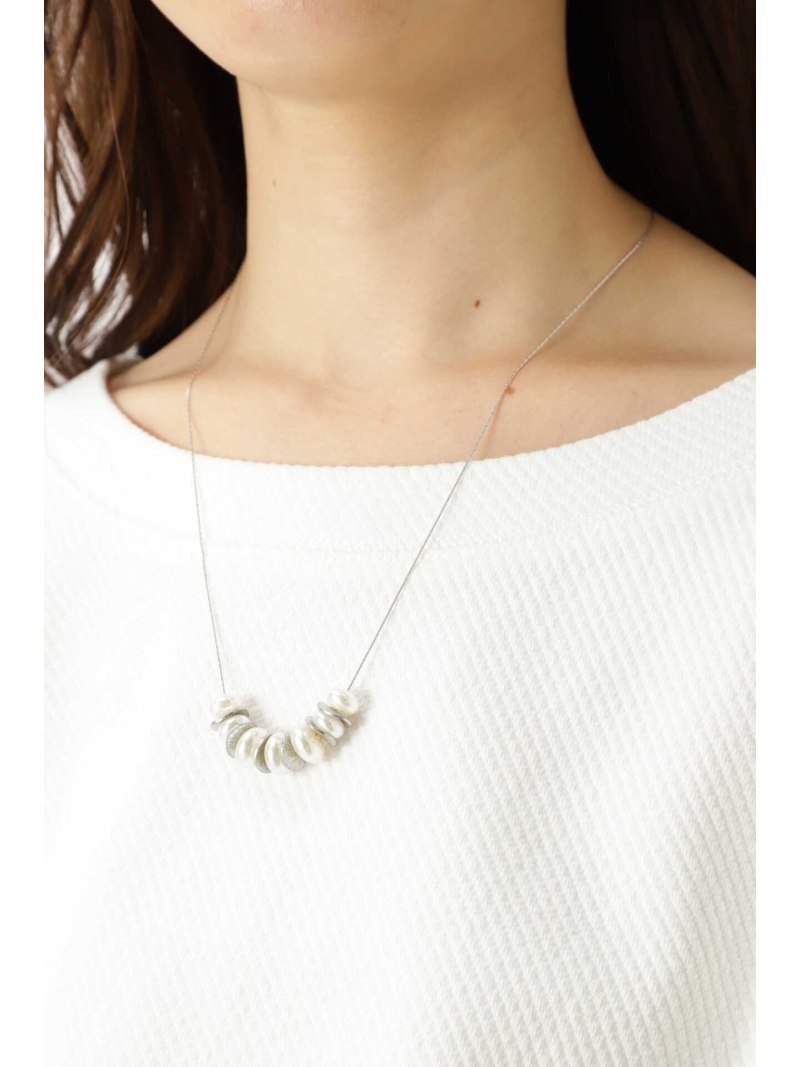 NATURAL BEAUTY BASIC(ナチュラルビューティベーシック)UFOパールロングネック変形パールの間に円盤型のメタルプレートを挟み込んだモダンなモチーフが目を惹くネックレス。